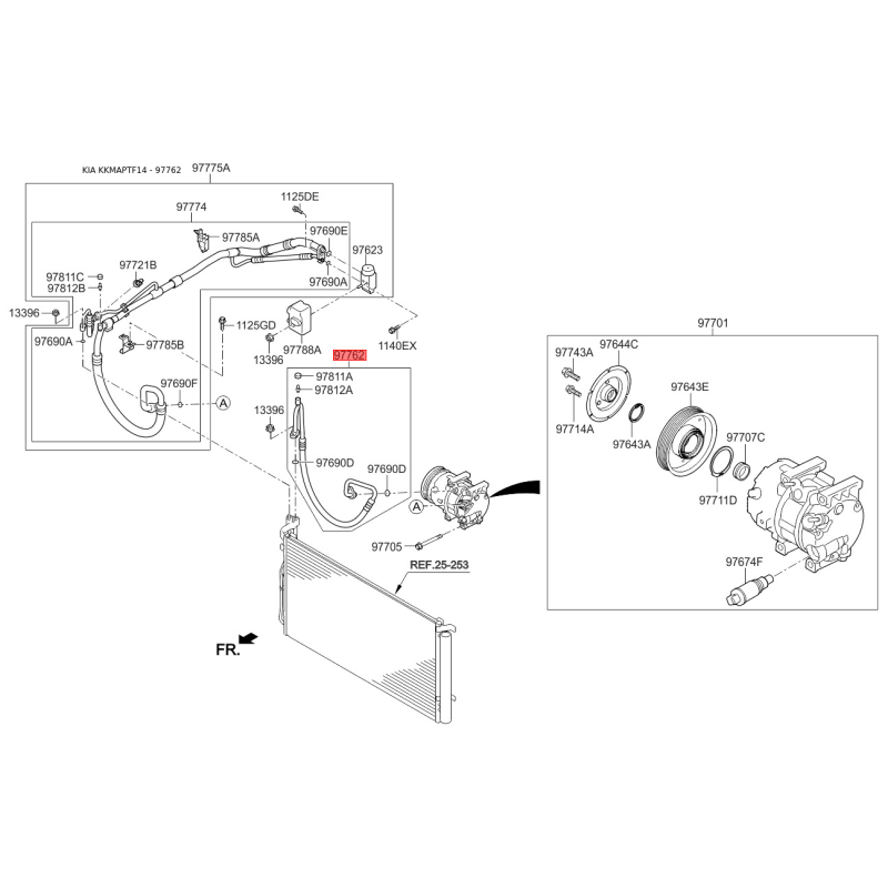 Трубопровод высокого / низкого давления, кондиционер 97762-3R000 Mobis