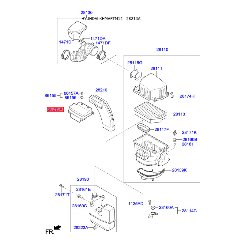 Рукав воздухозаборника, воздушный фильтр 28213-2S000 Mobis