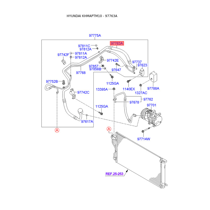 Трубопровод высокого / низкого давления, кондиционер 97764-2S500 Mobis