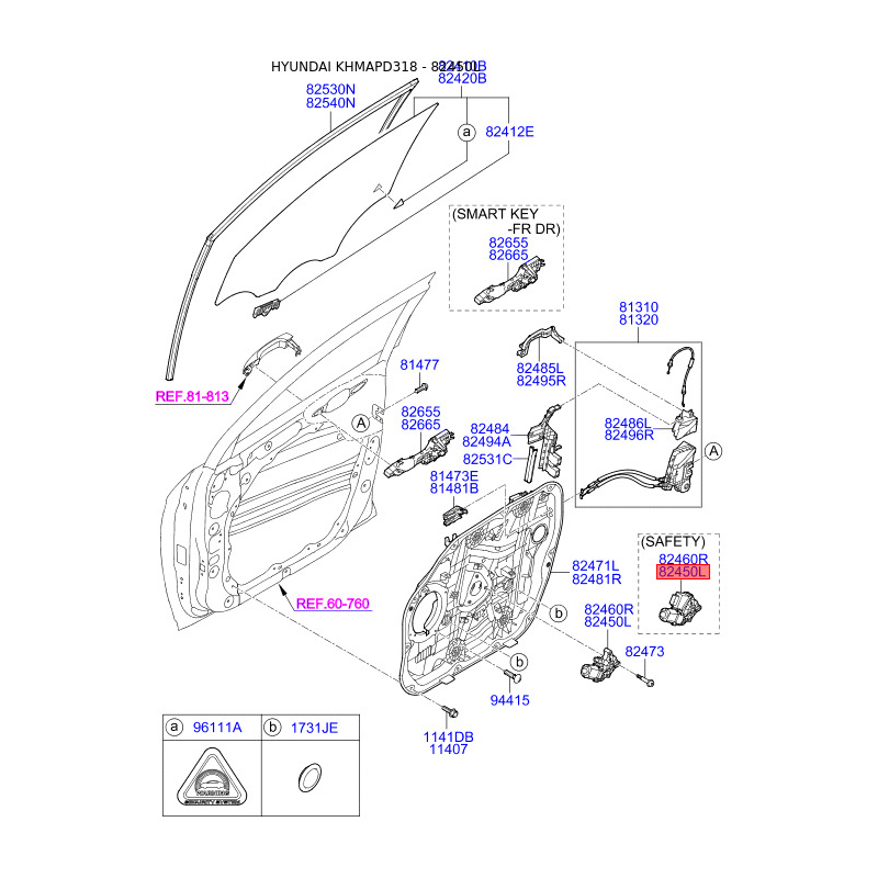 Поиск деталей можно выполнить по оригинальному коду 82450D3000.