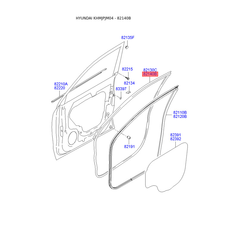 Уплотнитель (уплотнение) двери правый 82140-2E000 Mobis