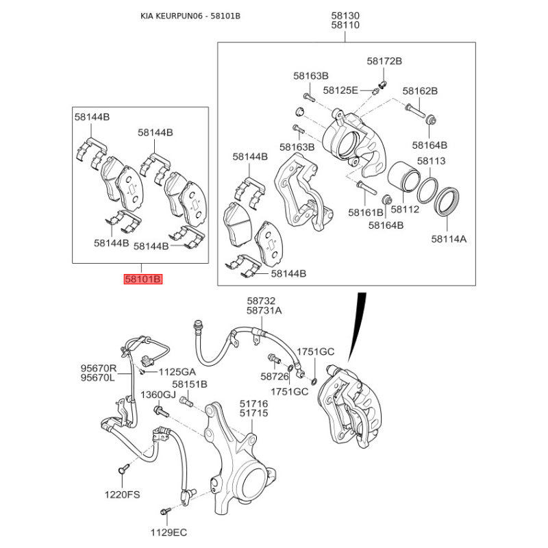 Поиск деталей можно выполнить по оригинальному коду S581011DE00.