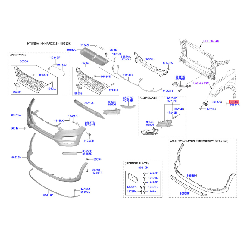 Поиск деталей можно выполнить по оригинальному коду 86513D3000.