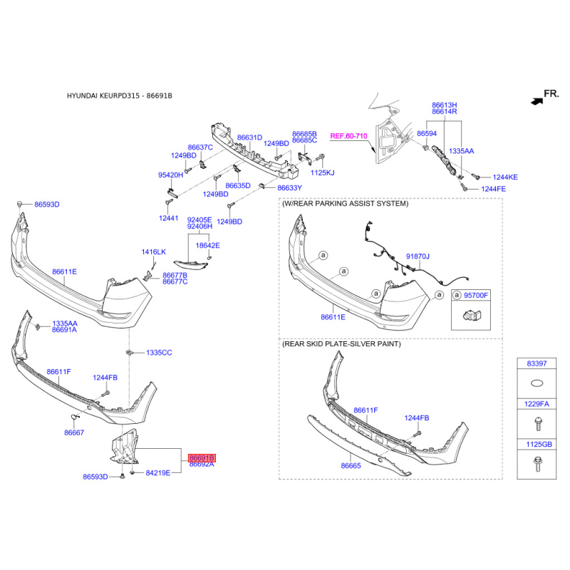 Поиск деталей можно выполнить по оригинальному коду 86691D3000.