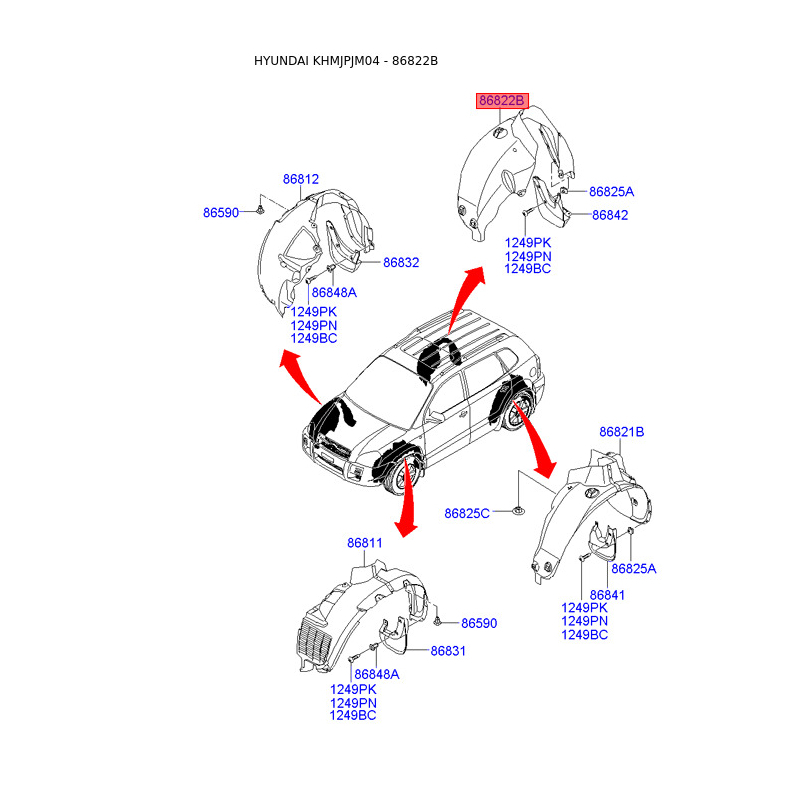 Обшивка (подкрылок), колесная ниша правая 86822-2E010 Mobis
