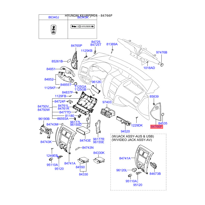 При получении заказа проверяйте комплектацию товара Накладка панели прибров (торпеды) правая 84767-2E100WK Mobis.