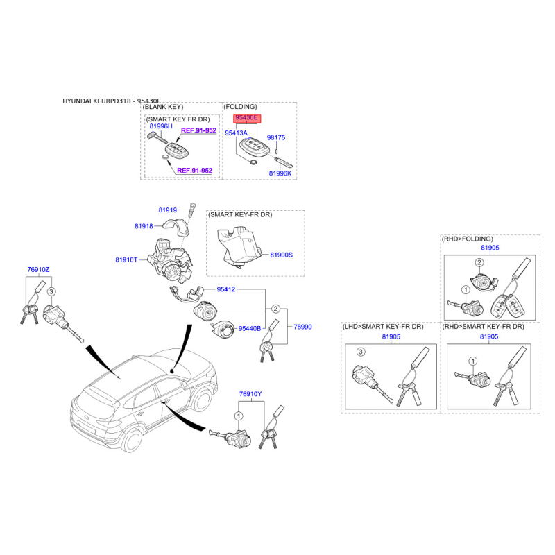 Поиск деталей можно выполнить по оригинальному коду 95430D3100.