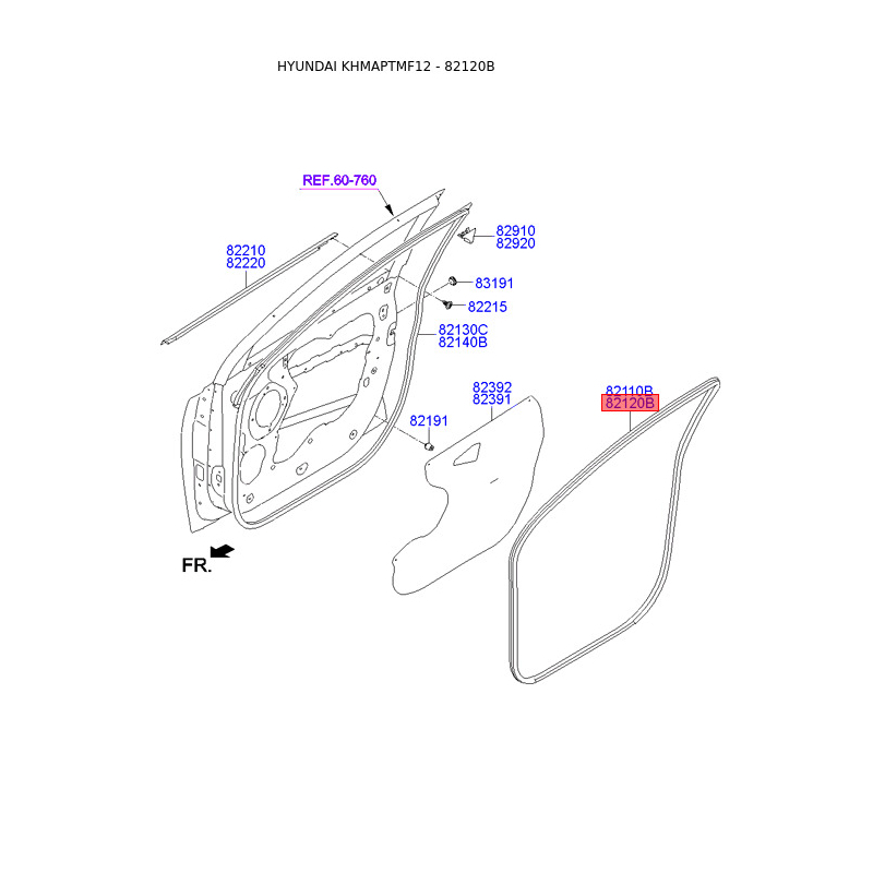 Уплотнитель (уплотнение) двери правый 82120-2S000 Mobis