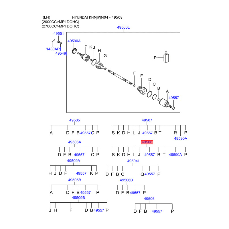 Шарнирный комплект приводного вала правый 49508-2EJ50 Mobis