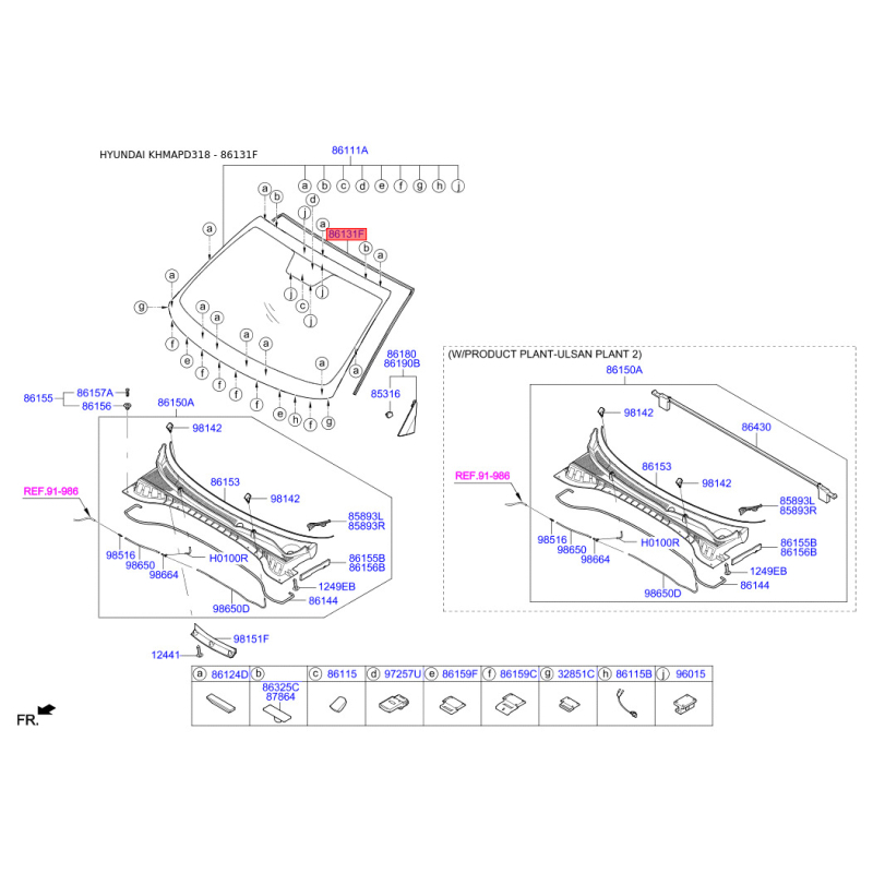 Молдинг (уплотнитель) лобового стекла 86130-D3000 Mobis