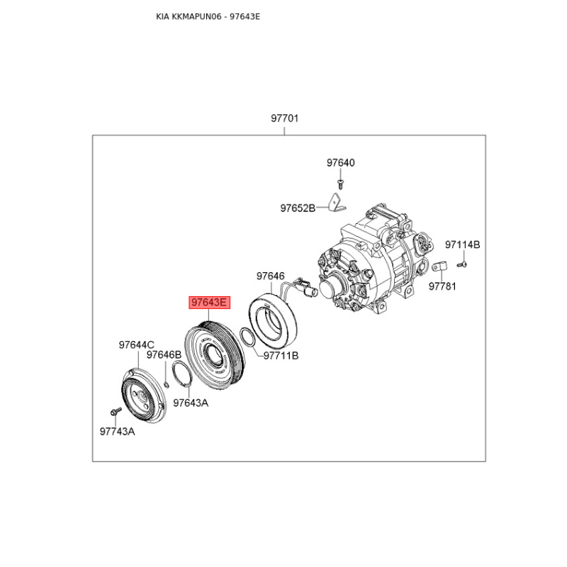 Шкив компрессора кондиционера 97643-1D100 Mobis