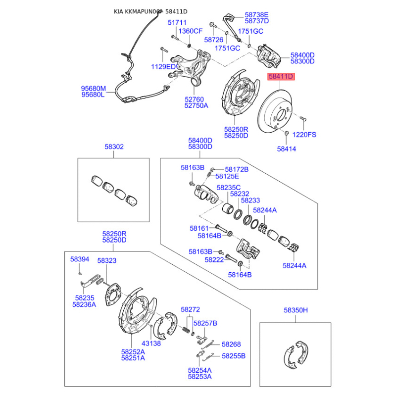 Поиск деталей можно выполнить по оригинальному коду 584111D000.