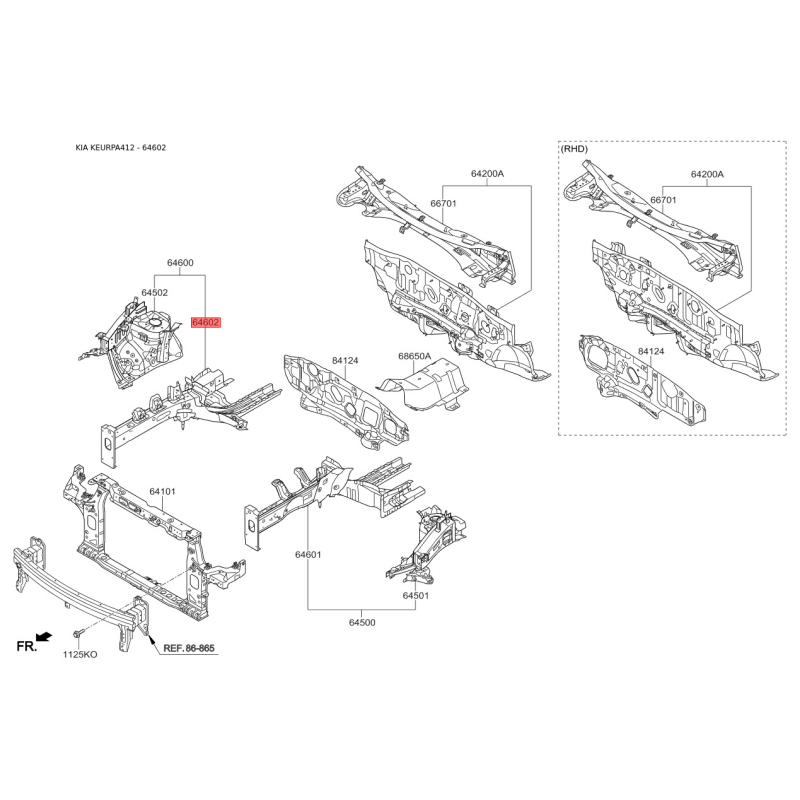 Поиск деталей можно выполнить по оригинальному коду 64602A4000.