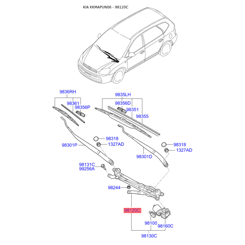 Привод стеклоочистителя, система очистки окон 98120-1D000 Mobis