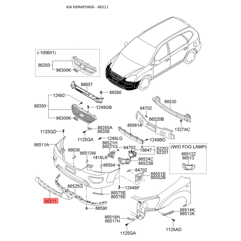 Решетка вентилятора, буфер 86511-1D160 Mobis