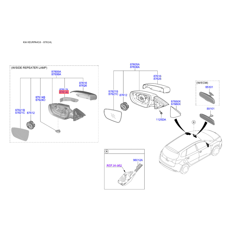 Оригинальный код 87614A4000 полностью совпадает с каталожным номером производителя Mobis.