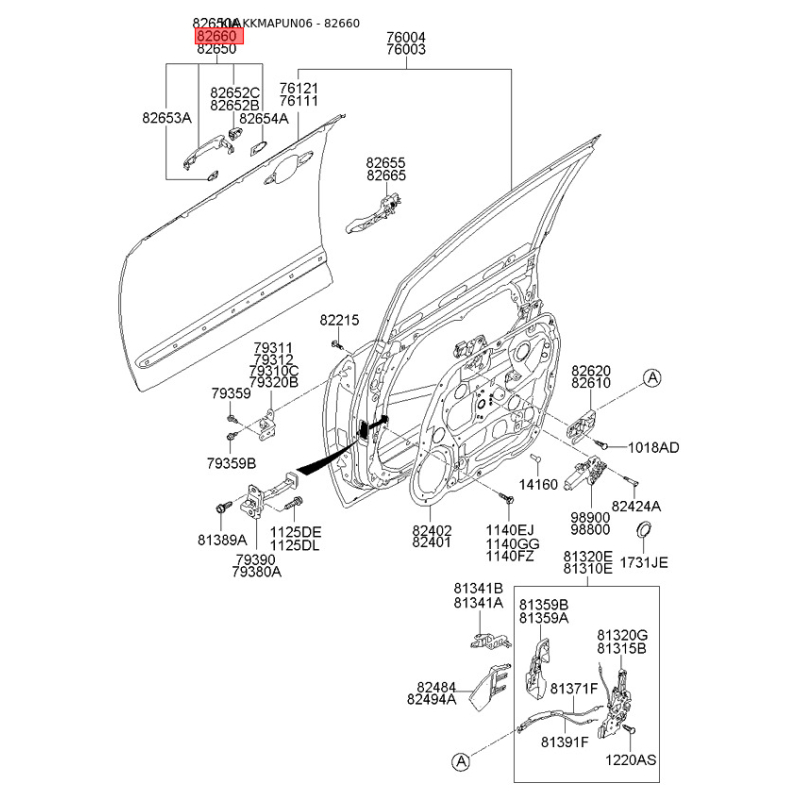 Ручка двери правая 82660-1D020 Mobis