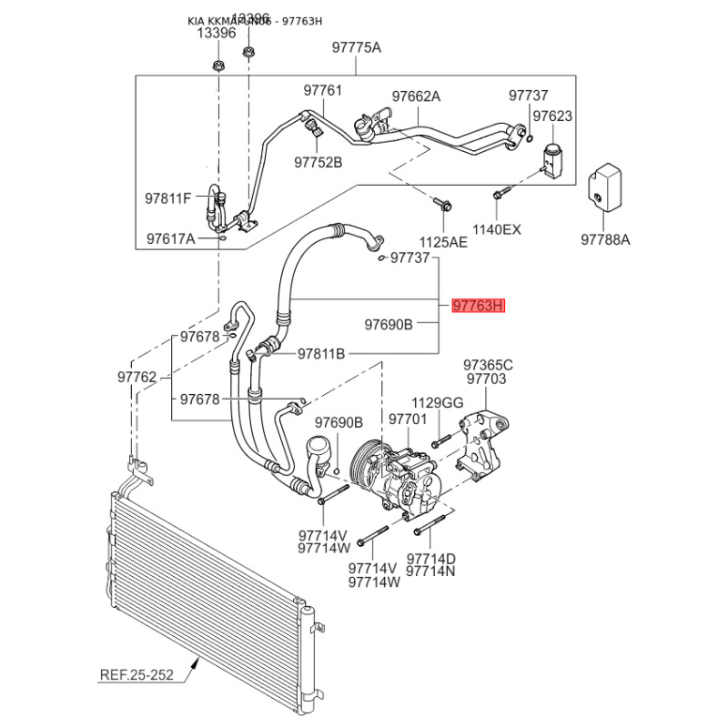 Трубопровод высокого / низкого давления, кондиционер 97763-1D200 Mobis