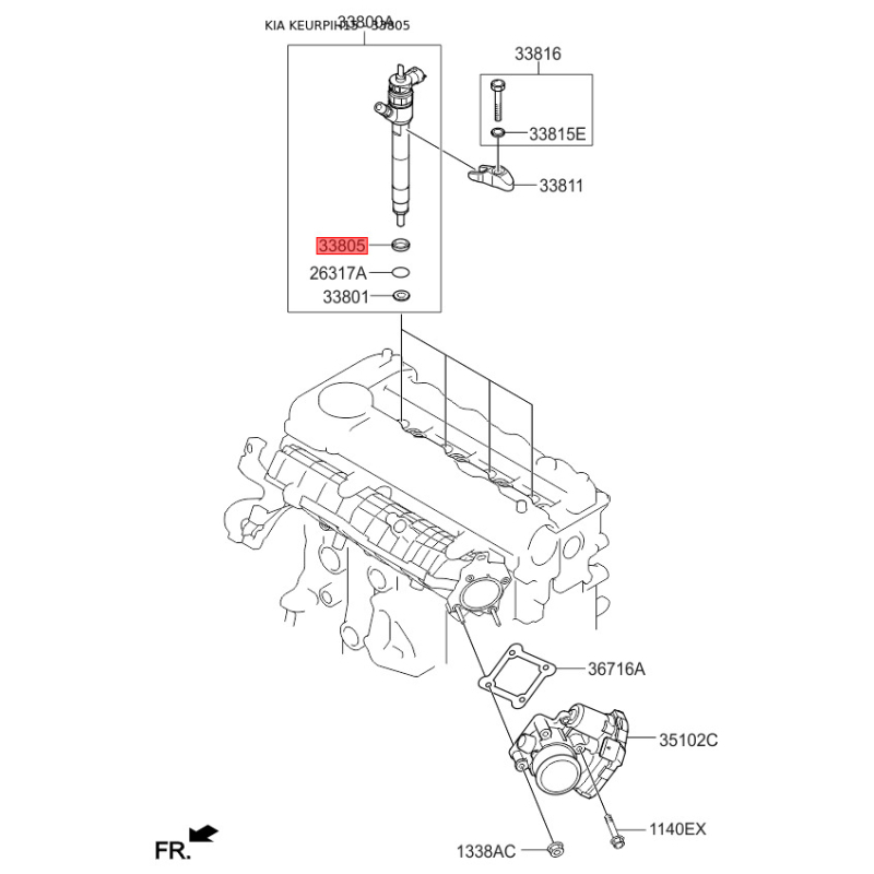 Уплотнительное кольцо, шахта форсунки 33805-2A700 Mobis