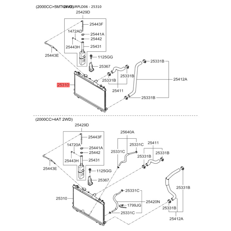 Радиатор охлаждения двигателя 25310-2F071 Mobis