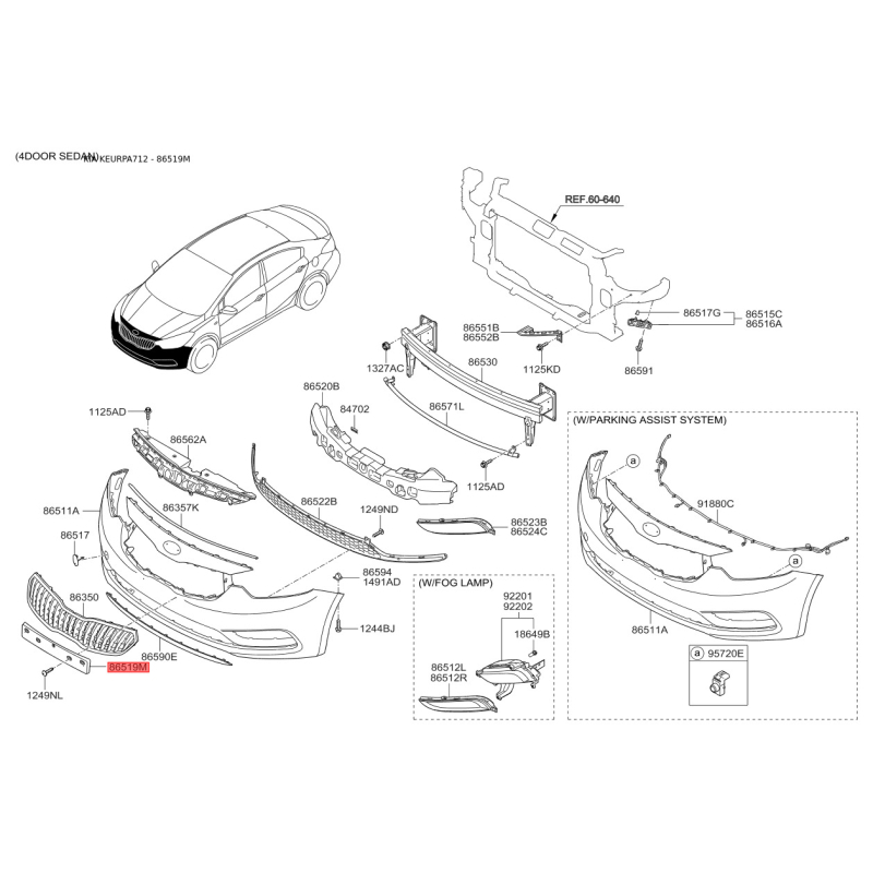 Поиск деталей можно выполнить по оригинальному коду 86519A7000.