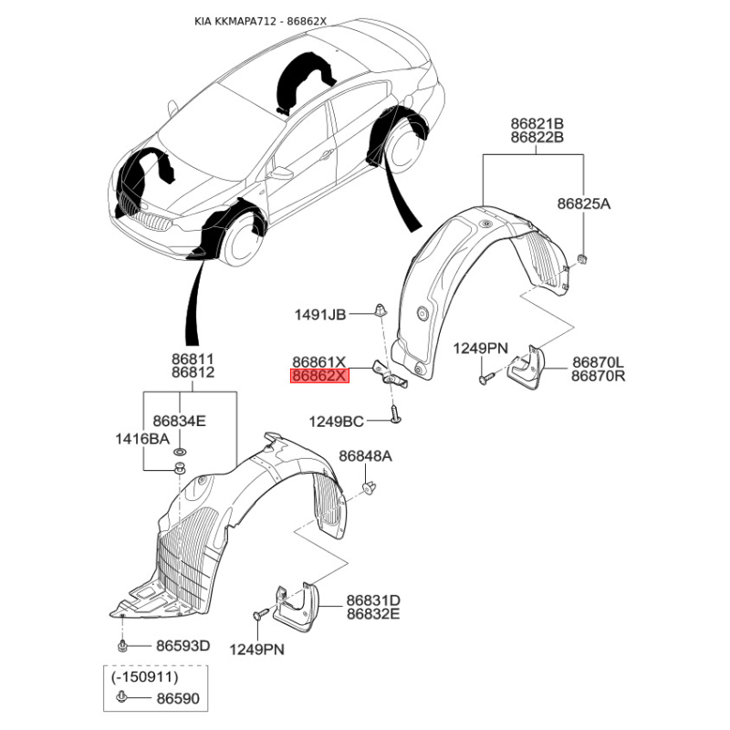 Крепления подкрылка и брызговика правое 86862-A7000 Mobis