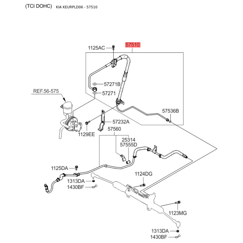 Гидравлический шланг(трубка), рулевое управление 57510-2F301 Mobis
