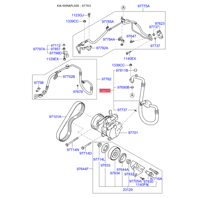 Трубопровод высокого / низкого давления, кондиционер 97763-2F900 Mobis