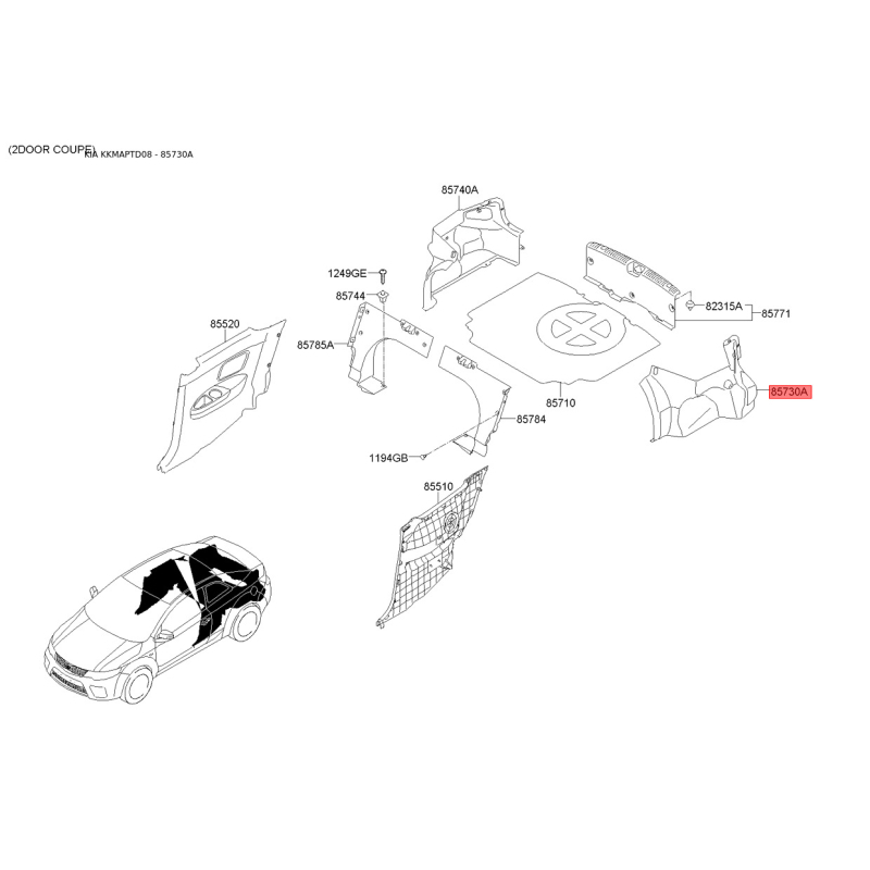 Перед монтажом запчасти проверьте оригинальный код 857301M500WK.