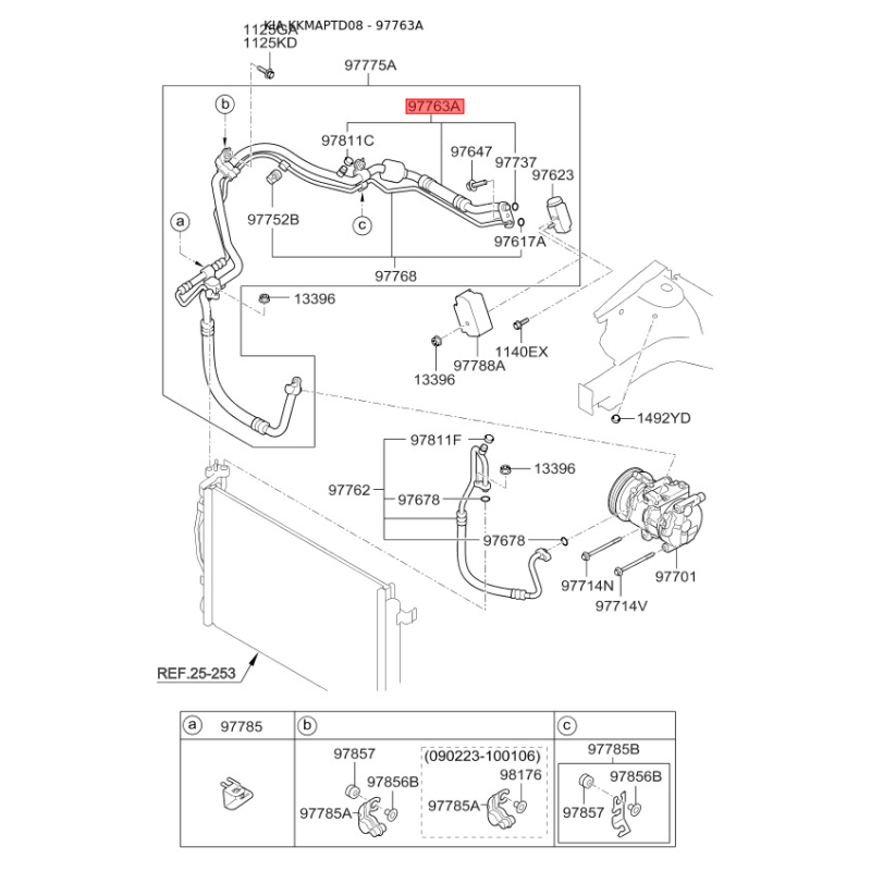 Трубопровод высокого / низкого давления, кондиционер 97764-1M100 Mobis