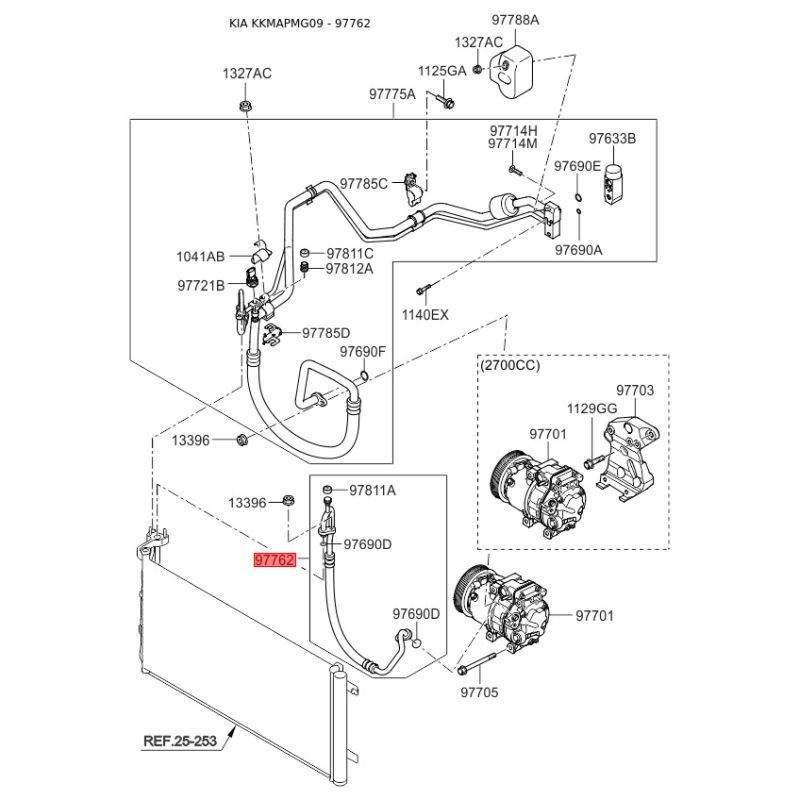 Трубопровод высокого / низкого давления, кондиционер 97762-2G002 Mobis
