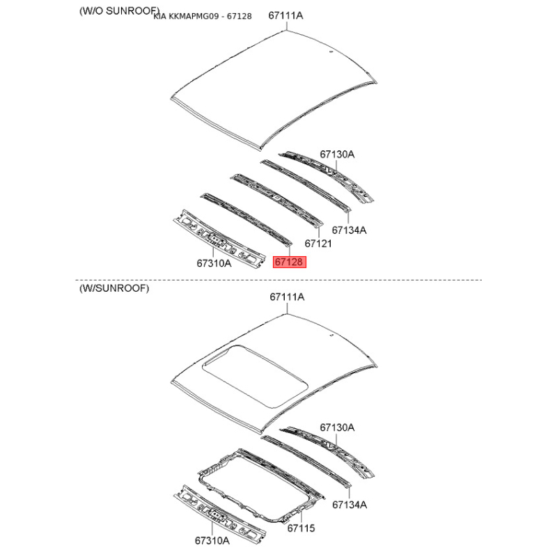 Каркас крыши 67152-2G000 Mobis