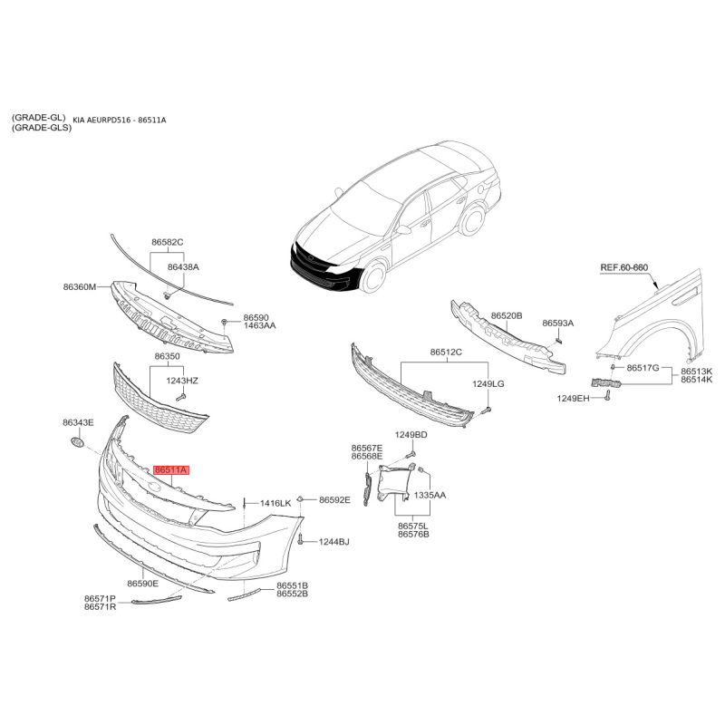 Поиск деталей можно выполнить по оригинальному коду 86511D5000.