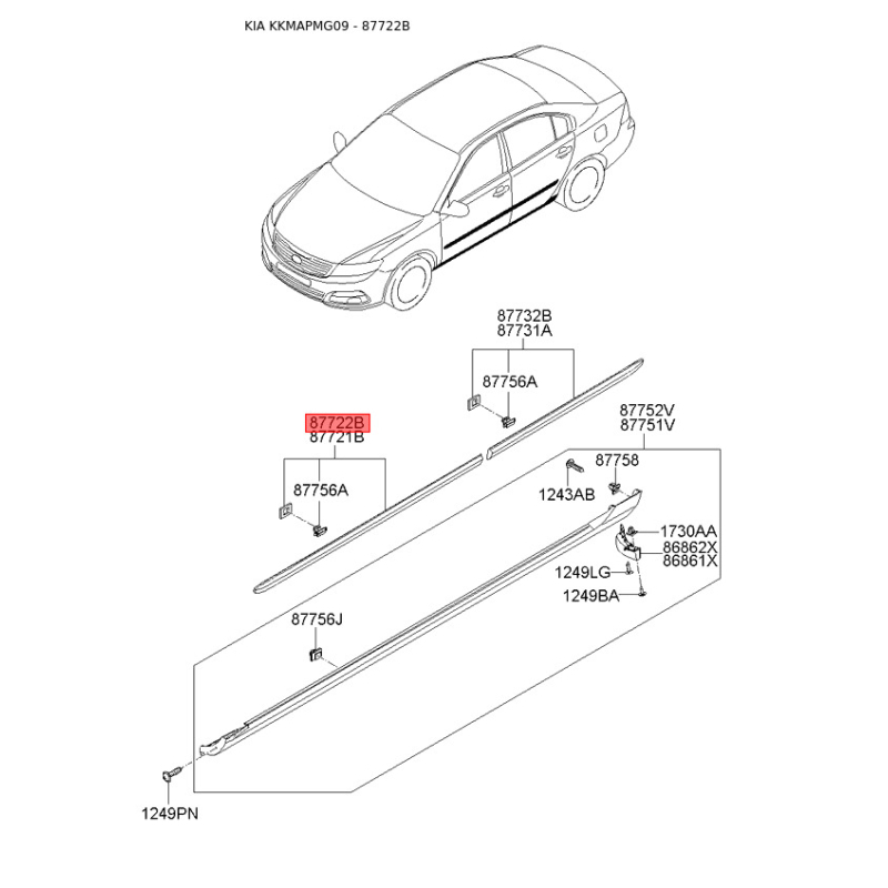 Молдинг порога, бампера и крыла правый 87712-2G000 Mobis