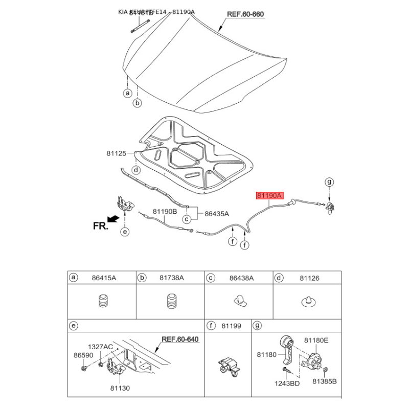 Тросик замка капота 81190-2T000 Mobis