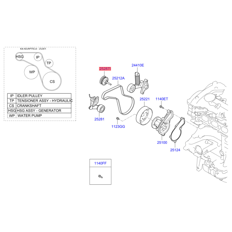 Ролик паразитный (ведущий) поликлинового ремня 25287-2E510 Mobis