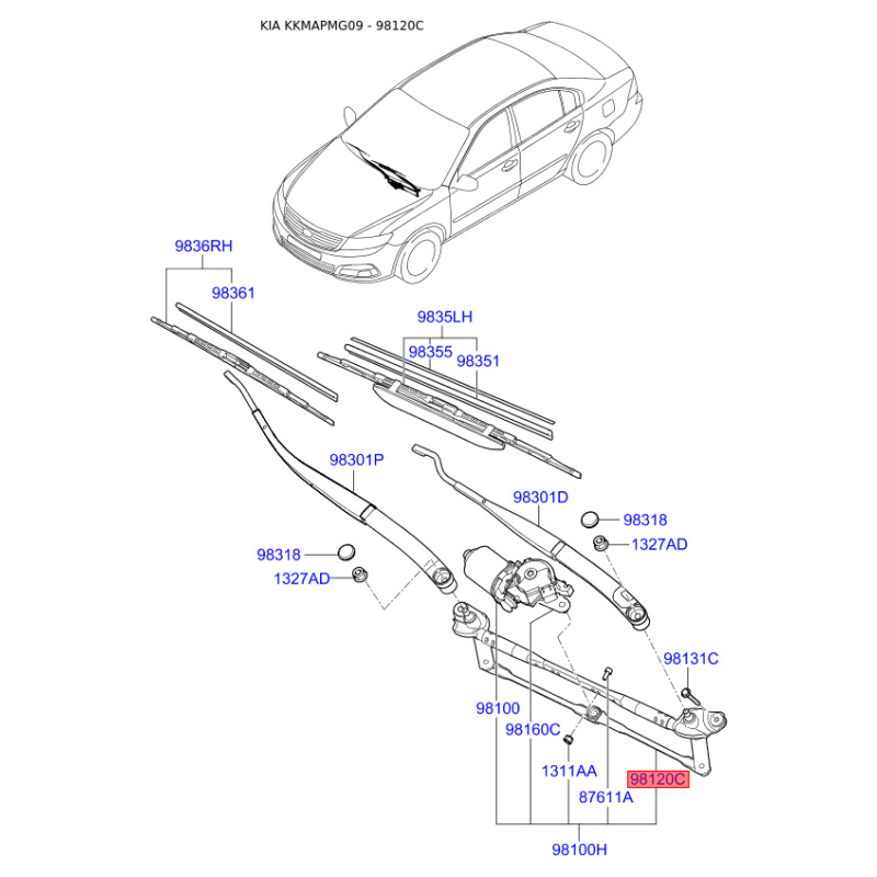 Перед монтажом запчасти проверьте оригинальный код 981202G100.
