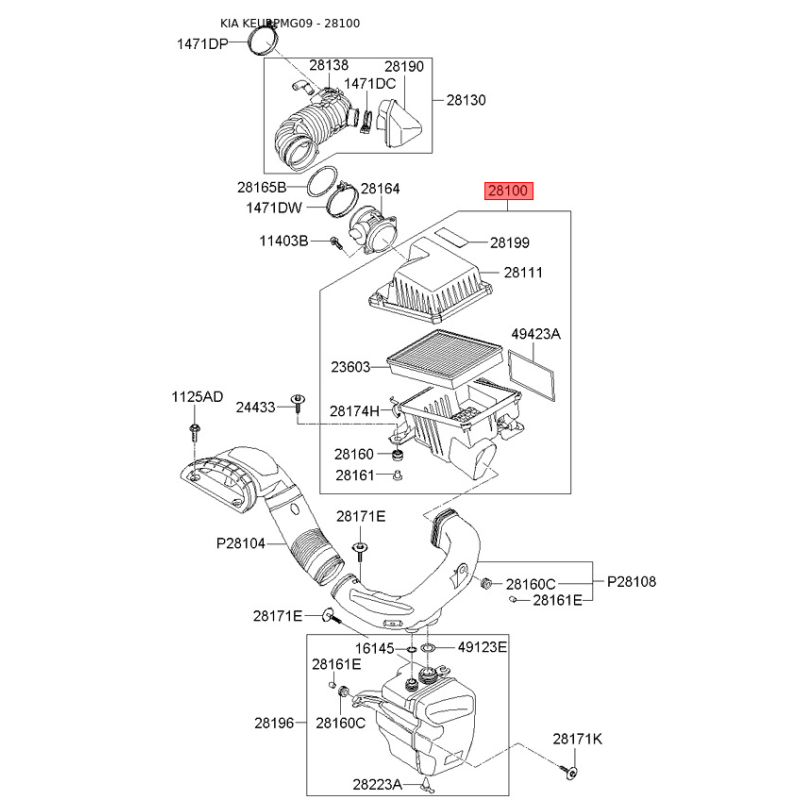 Крышка, корпус воздушного фильтра 28110-2G300 Mobis
