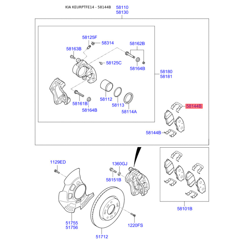 Поиск деталей можно выполнить по оригинальному коду 581443Q100.