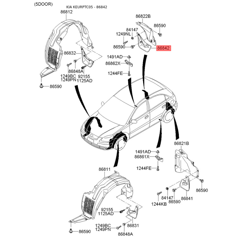 При получении заказа проверяйте комплектацию товара Брызговик задний правый 86842-1G500 Mobis.