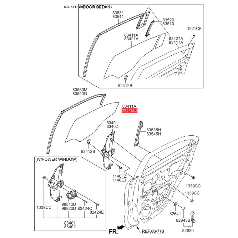 Боковое стекло (окно) двери правое 83421-1W000 Mobis