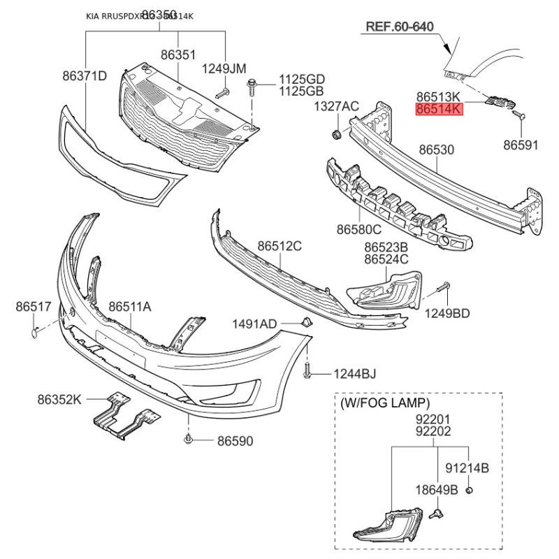 Поиск деталей можно выполнить по оригинальному коду 865144Y000.