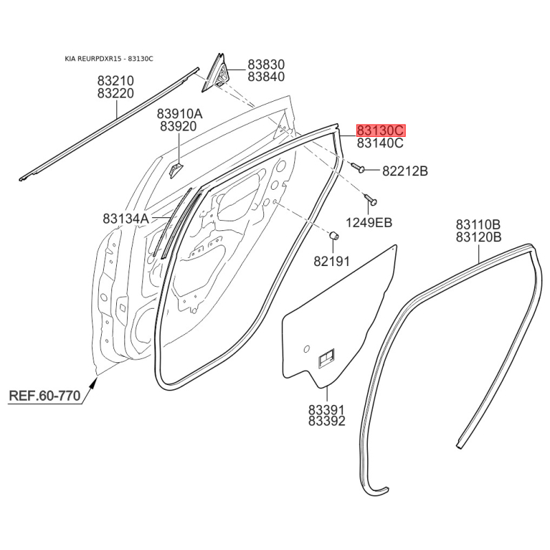 Уплотнитель (уплотнение) двери левый 83130-4Y200 Mobis