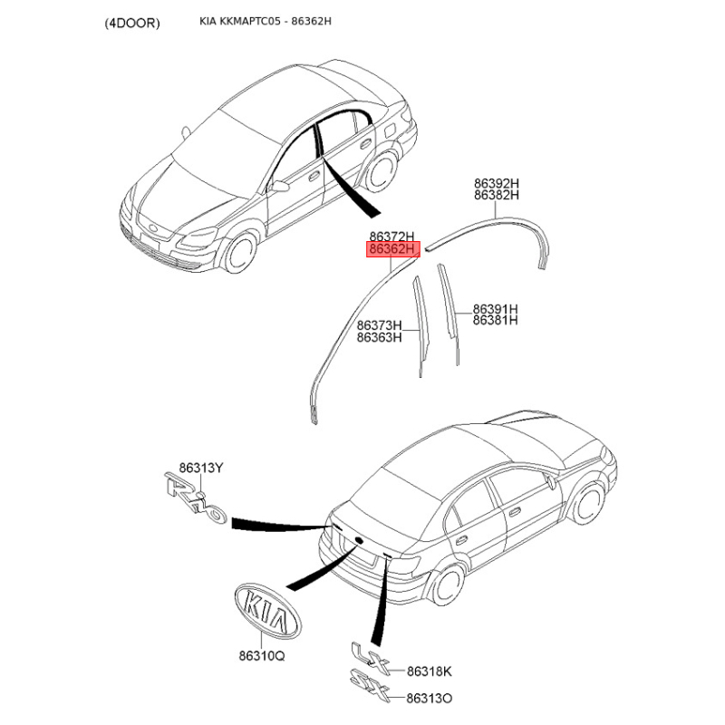 Поиск деталей можно выполнить по оригинальному коду 863621G001.