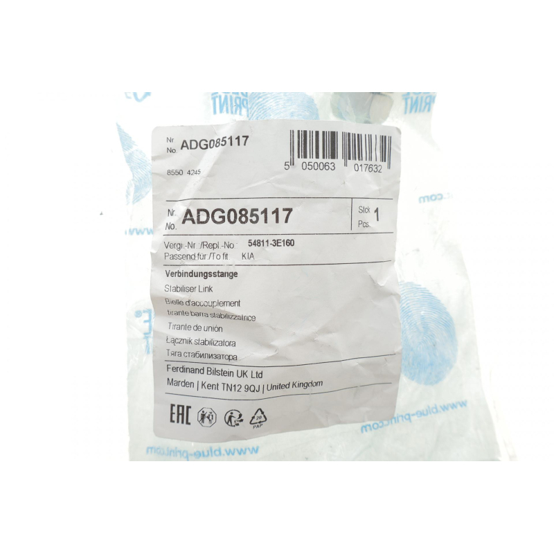 Оригинальный код ADG085117 полностью совпадает с каталожным номером производителя Blue Print.