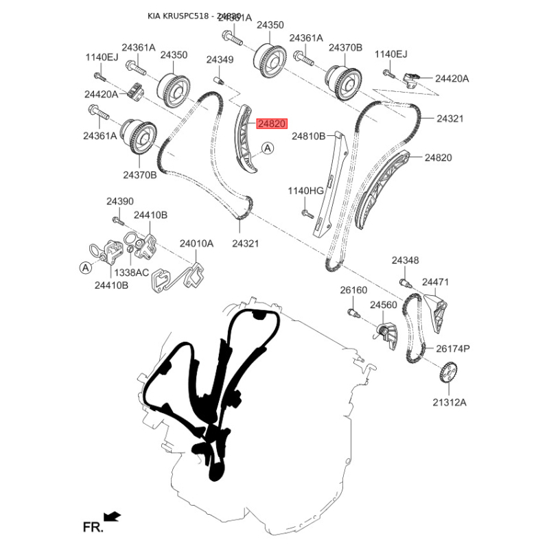 Планка успокоителя, цепь привода 24820-3C100 Mobis