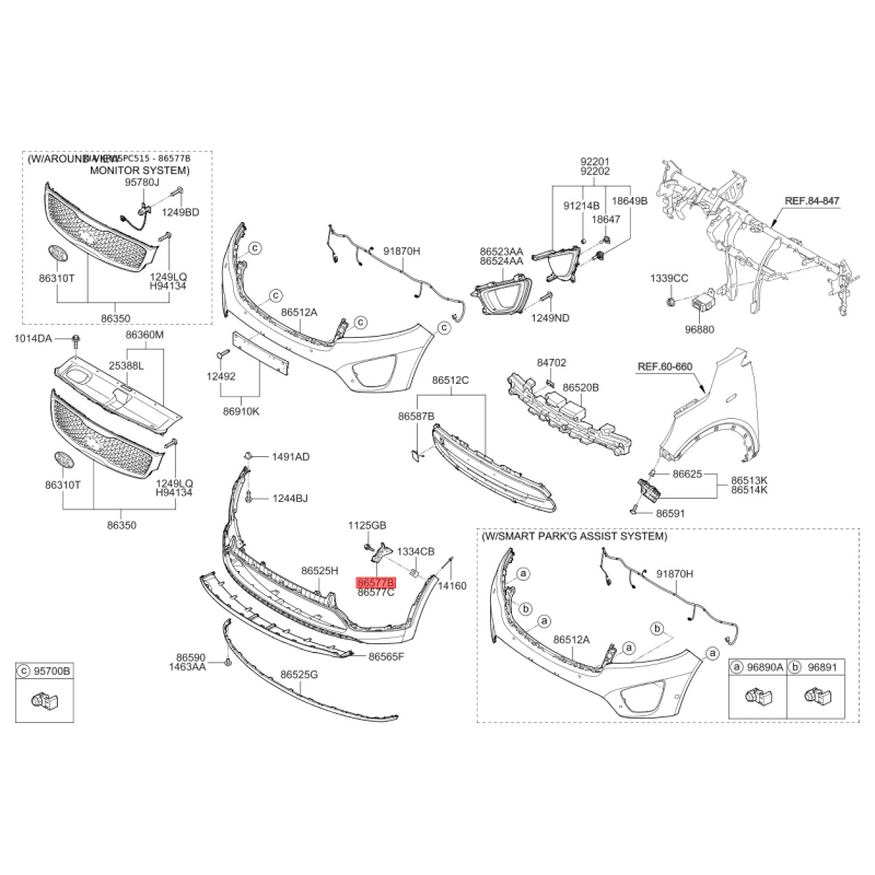 Поиск деталей можно выполнить по оригинальному коду 86577C5000.