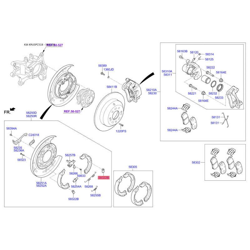 Поиск деталей можно выполнить по оригинальному коду 583223J000.