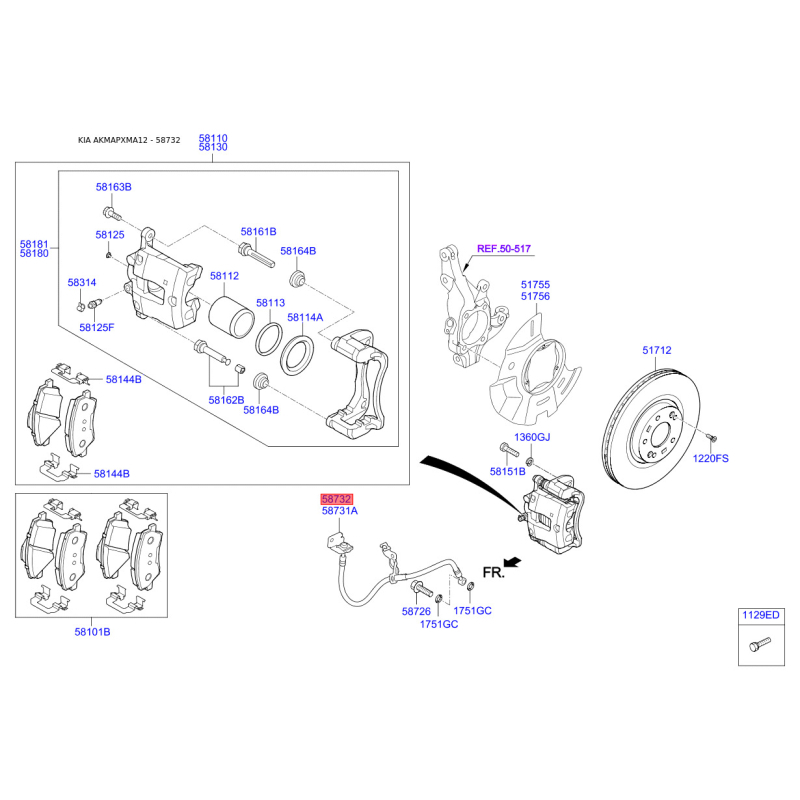 Поиск деталей можно выполнить по оригинальному коду 587322P100.