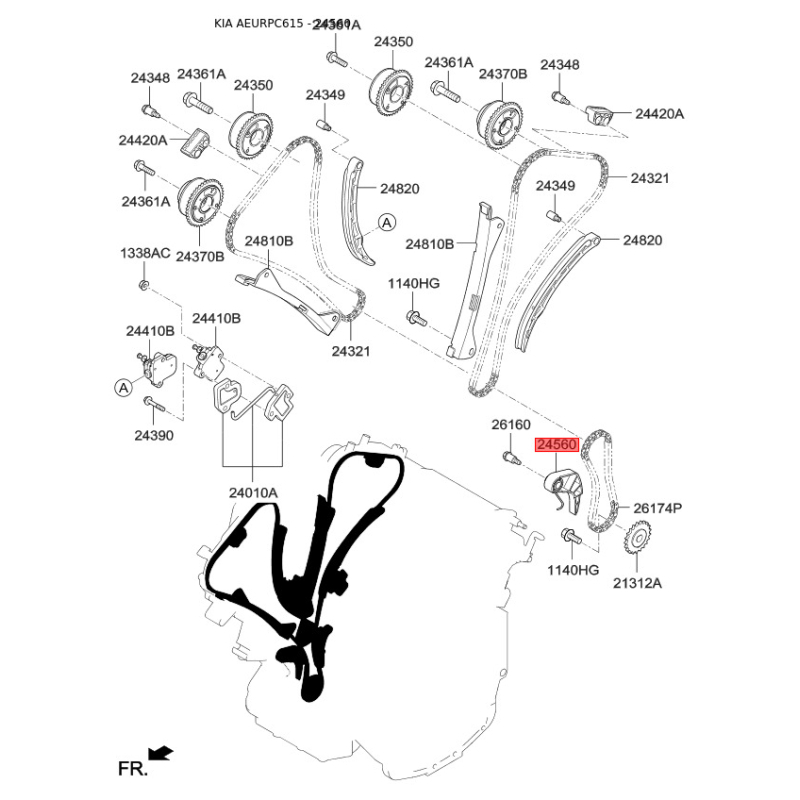 Натяжное устройство цепи, цепь привода распредвала 24560-3CGA1 Mobis